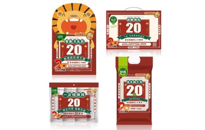 該設計主題圍繞著永輝20周年紀念以及“歡樂事件”的概念。在設計上,采用中國傳統(tǒng)象征喜慶的紅色和金色,再加上永輝標志的元素。整體設計風格呈現(xiàn)現(xiàn)代感,并彰顯20周年這一主題。通過這一系列產(chǎn)品,永輝持續(xù)提高自有品牌的滲透率。