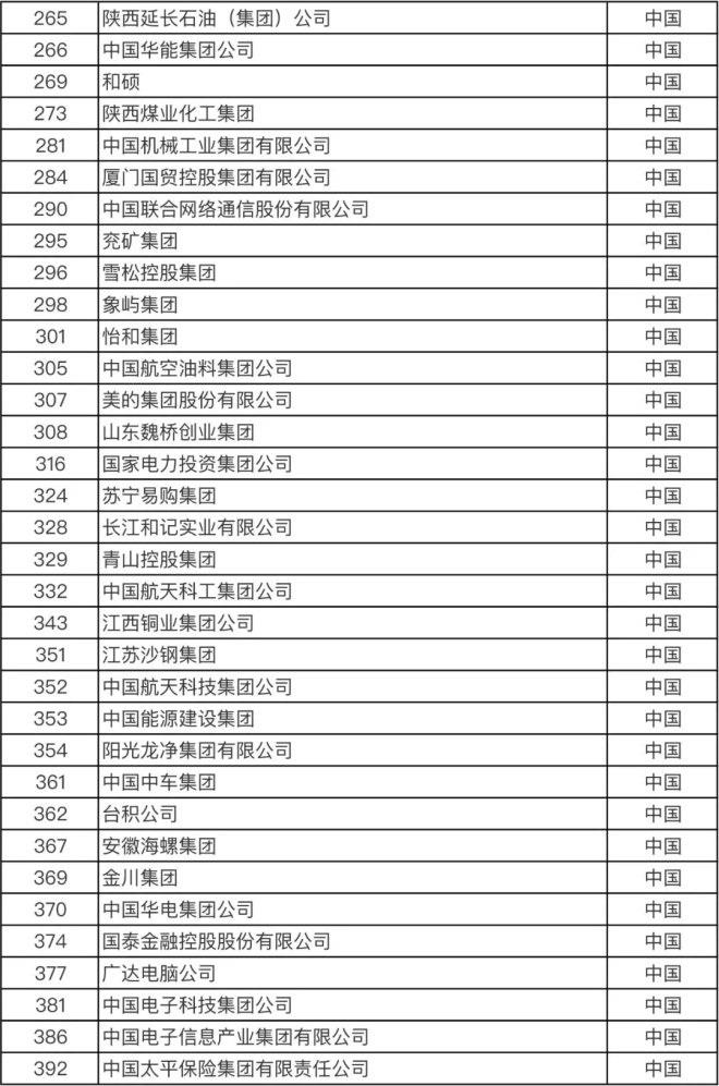 以下為2020年《財富》世界500強(qiáng)中國榜單: