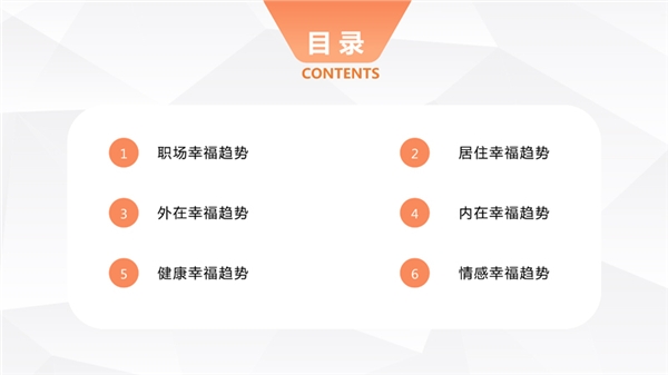 以剛剛過去的2020年“雙11”為例,報告顯示,為了在工作、家庭和自我三個層面提升幸福度,中國消費者的消費行為,呈現出6大新趨勢——職場幸福趨勢、居住幸福趨勢、外在幸福趨勢、內在幸福趨勢、健康幸福趨勢、情感幸福趨勢。