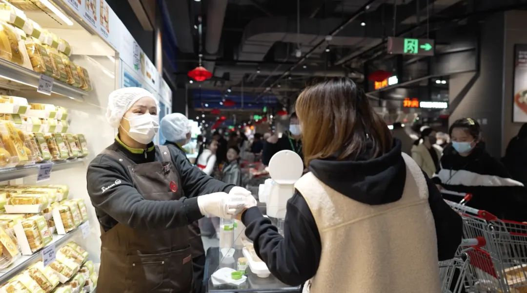 試吃員總會(huì)在顧客靠近時(shí)主動(dòng)遞上試吃品,紙托里的現(xiàn)烤面包切得方正整齊,一旁的食品級(jí)小夾子輕巧地夾起一塊。顧客王女士說(shuō):“以前整盒自取總擔(dān)心衛(wèi)生問(wèn)題,現(xiàn)在像在朋友家做客一樣安心。”這樣的場(chǎng)景,正是永輝試吃體驗(yàn)的縮影。試吃員上崗前必須通過(guò)商品知識(shí)考核,從一塊試吃品的尺寸、夾取工具的設(shè)計(jì),到員工遞出時(shí)的微笑弧度,每一個(gè)細(xì)節(jié)都在無(wú)聲地傳遞著“被尊重”的儀式感。