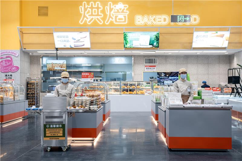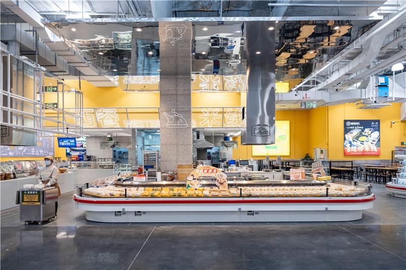 在云南旗艦店中,永輝秉持“更高標準、更人性化、更具體驗感“的宗旨,對門店場景進行重新設(shè)計,通過增加“煙火氣“的烘焙區(qū)、加工食品區(qū)做到”開門見鮮“,充分調(diào)動消費者“視覺、嗅覺、味覺”的感官體驗。