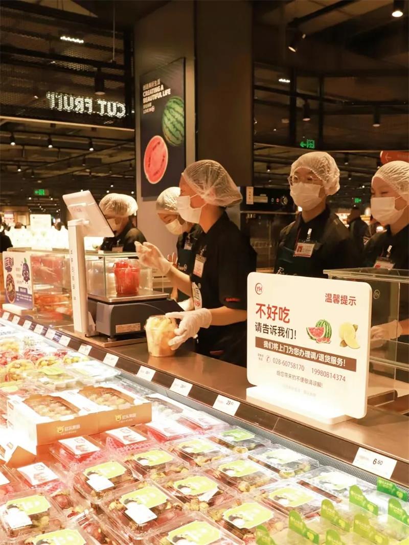 我們過去一直強調的日清原則正在被各家調改店嚴格執行。果切嚴格遵守468折價原則,超過4小時八折銷售,超過6小時六折銷售,超過8小時直接下架報損。葉菜、肉禽、水產等部分商品也會根據當天實際情況做日清折價,此保證商品的新鮮度及口感。