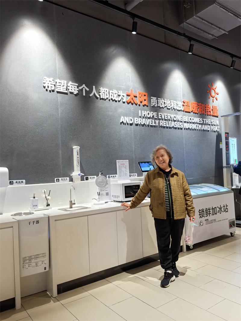 門店外,為排隊的客人們準備遮陽棚、礦泉水和小板凳,幫離店的銀發族拎重物。門店里,便民區的血壓測量、視力測試、直飲水、洗手臺、放大鏡,都是備受顧客喜愛的新服務。工作人員甚至會用尺子測算寵物尿墊的大小,來做好寵物的照料。