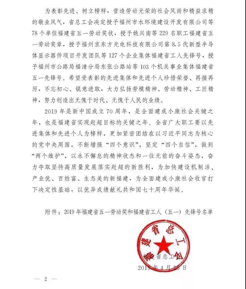2019年福建省五一勞動獎先進(jìn)集體與個人名單